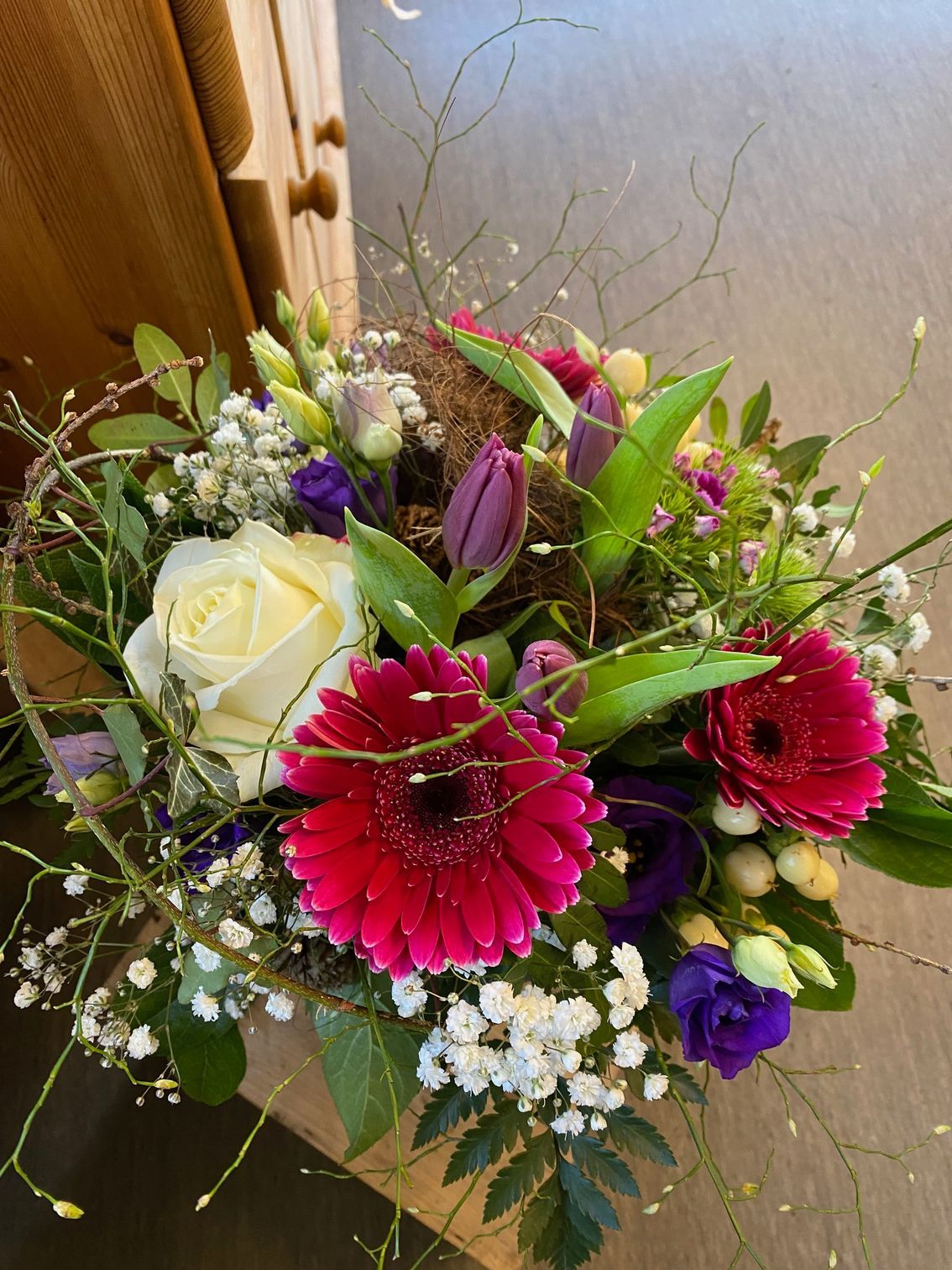Trauerbegleitung: Mit unseren Arrangements drücken wir Mitgefühl und Respekt in schweren Zeiten aus. Unsere Trauerschmuck-Kreationen sind eine einfühlsame Möglichkeit, Abschied zu nehmen und Trost zu spenden.